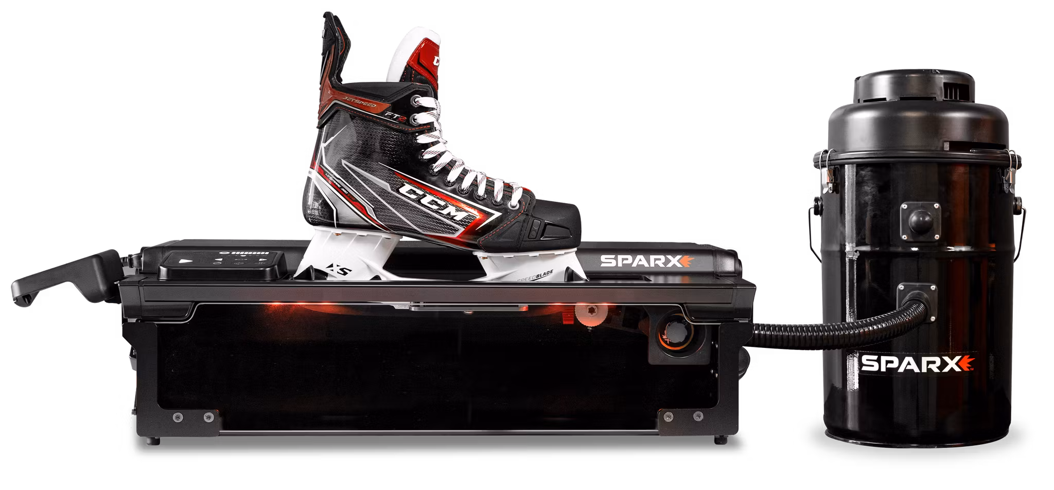 En smidig dammsugare förberedd för Sparx skridskoslip i singel eller dual version. Med filter för att hålla slipen ren från slipdamm och förlänga livstiden för dammsugaren samt hålla luften i sliprummet fri från farliga partiklar.